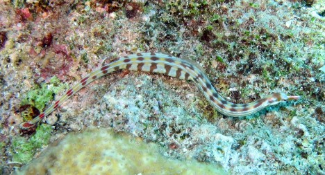 Flötenfisch (Fistularia commersonii) Das Verhältnis von kleinen Brustflossen zu langem Körper lässt Flötenfische wie kleine U-Boote über und am Riffdach schweben. Bereits als Schnorchler hat wohl jeder schon mit ihnen Kontakt aufgenommen. Es gibt sie in zahlreichen Farbausführungen. Schwimmt man…